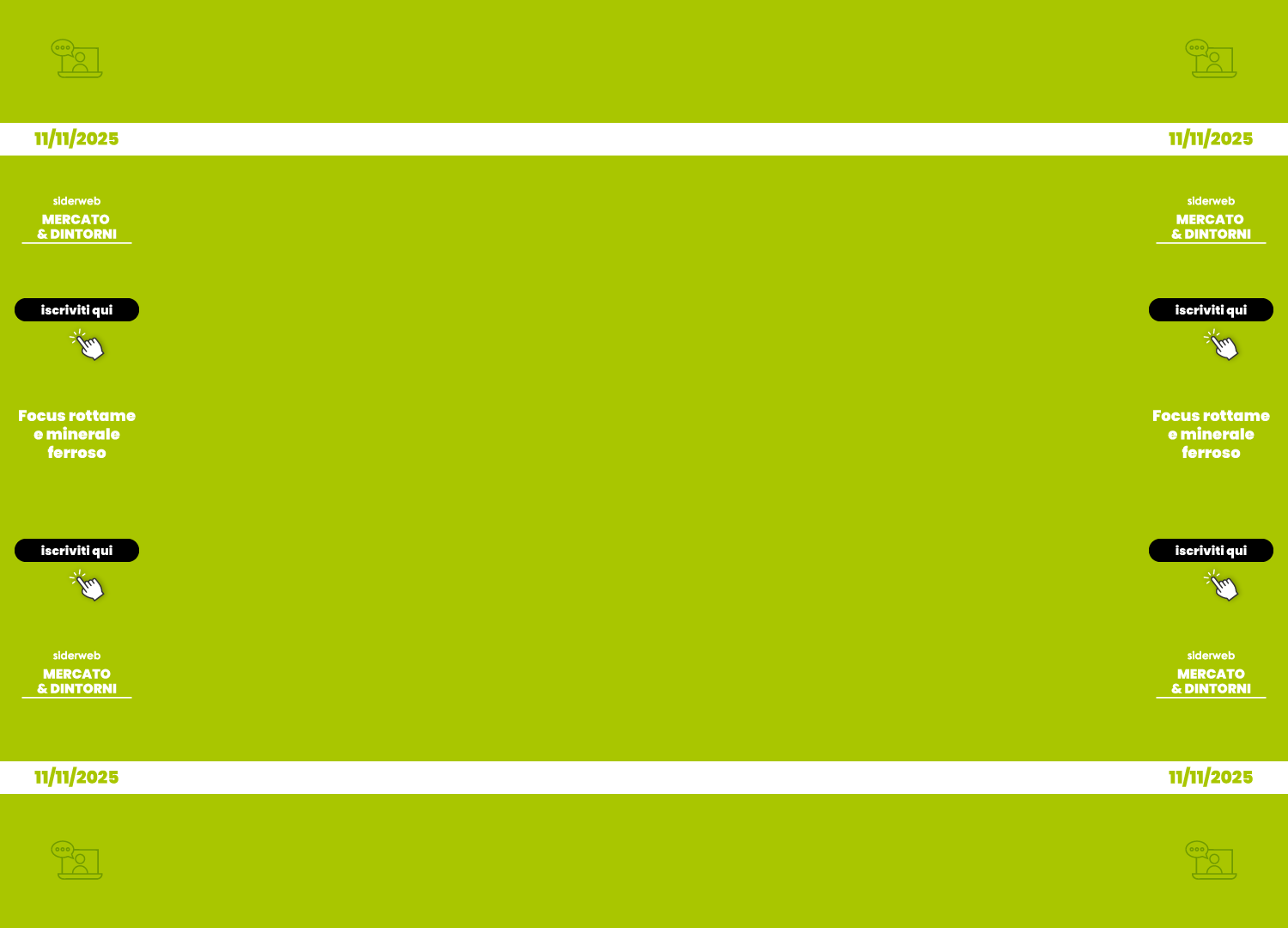 Puoi registrarti gratuitamente a Siderweb e riceverai le credenziali per iscriverti agli eventi, scaricare i dossier, gli speciali della redazione o dall'ufficio studi. Registrandoti riceverai inoltre la WEEKLY, la newsletter con la sintesi settimanale delle notizie più importanti. Il servizio è gratuito e potrai disiscriverti in qualunque momento.