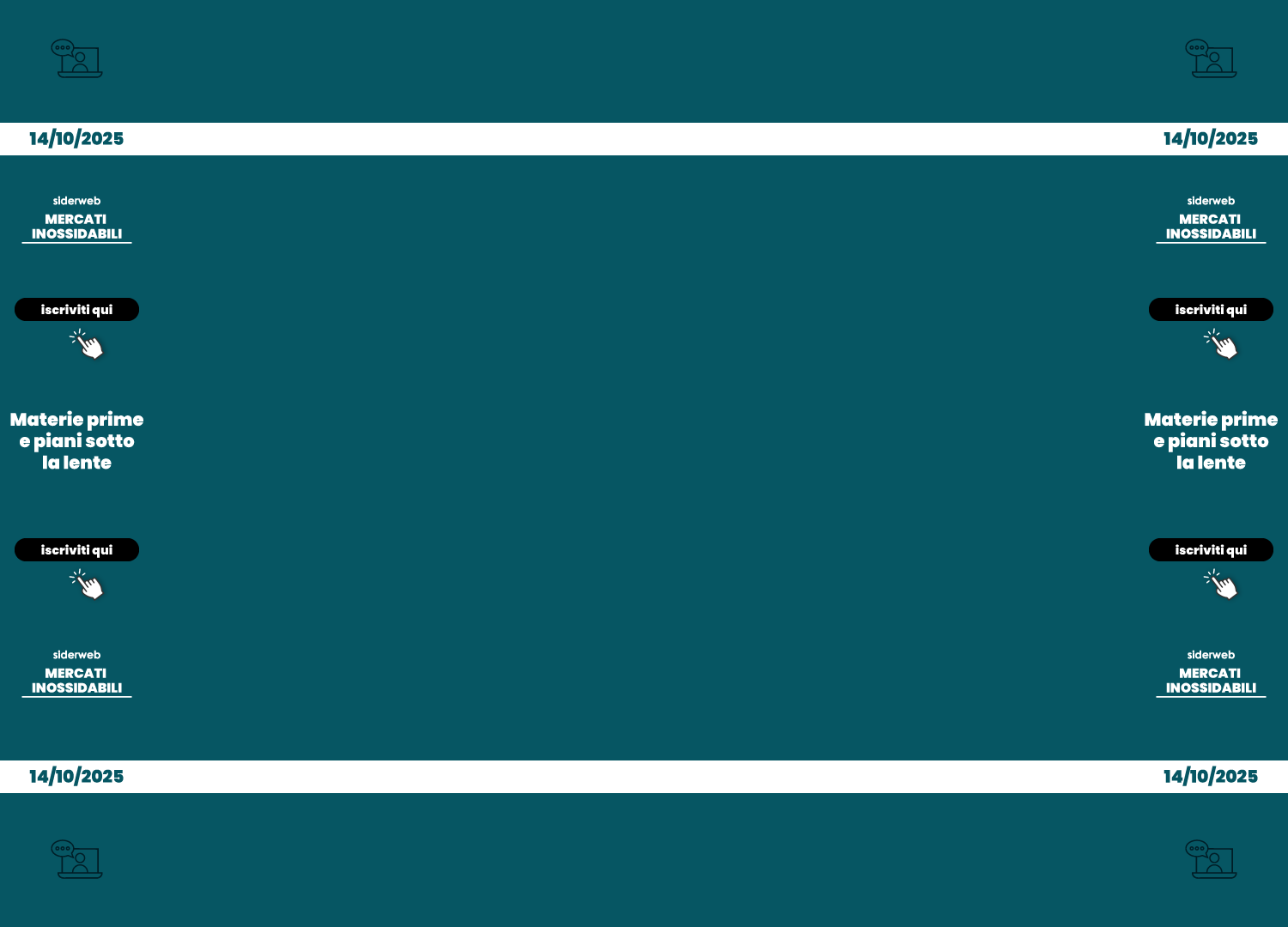 Resta comunque sintonizzato su siderweb: organizziamo eventi, focus ai quali partecipano operatori italiani e stranieri, momenti nei quali ci si confronta per capire quale direzione stanno prendendo i mercati.